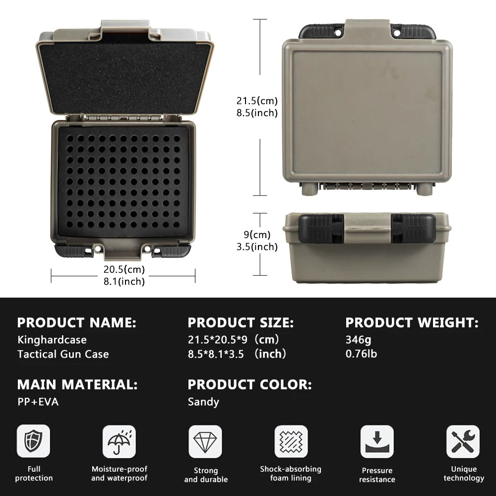 The AIRSSON Tactical Ammo Box is a robust and portable storage solution designed to securely hold ammunition for rifles and pistols, including 9mm, 7.62mm, and .223 calibers. Made from high-quality PP material with EVA foam inserts, this case can store up to 99 rounds, providing excellent protection against impact, dust, and moisture.