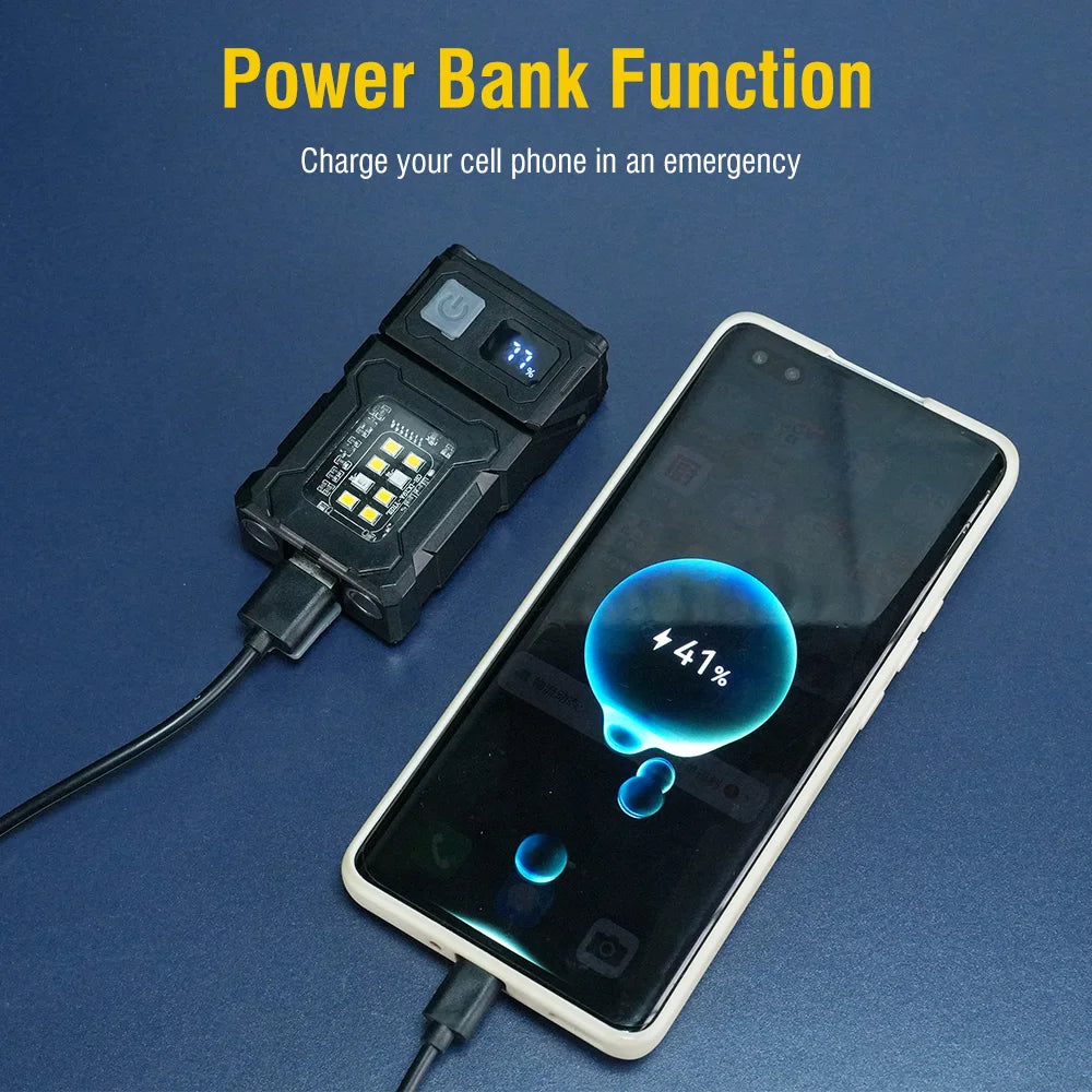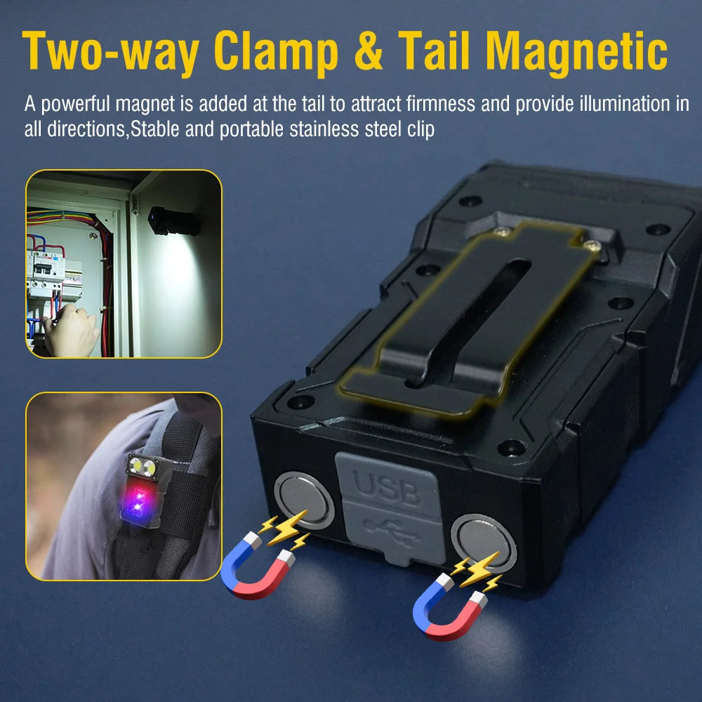 Equipped with a USB-C charging port, digital power display, strong magnetic base, and clip, this lightweight torch is perfect for hands-free use and outdoor adventures.