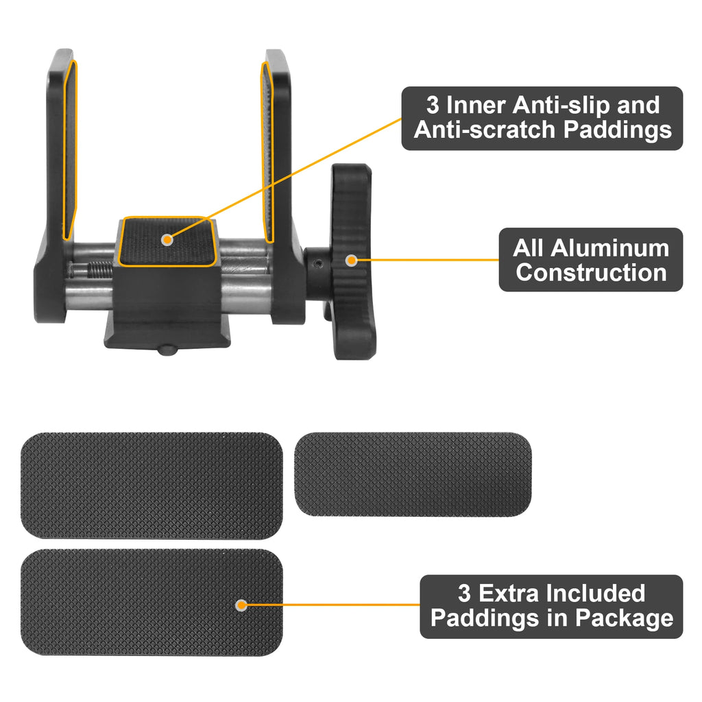 Designed to fit most tripods and shooting sticks, it offers quick setup, firm grip, and scratch protection for your firearm.