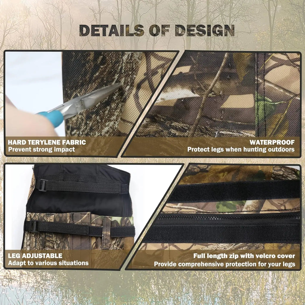 Protect your legs in rugged terrain with these Camouflage Waterproof Leg Gaiters. Built from tough Oxford fabric, they guard against mud, moisture, wind and brush.