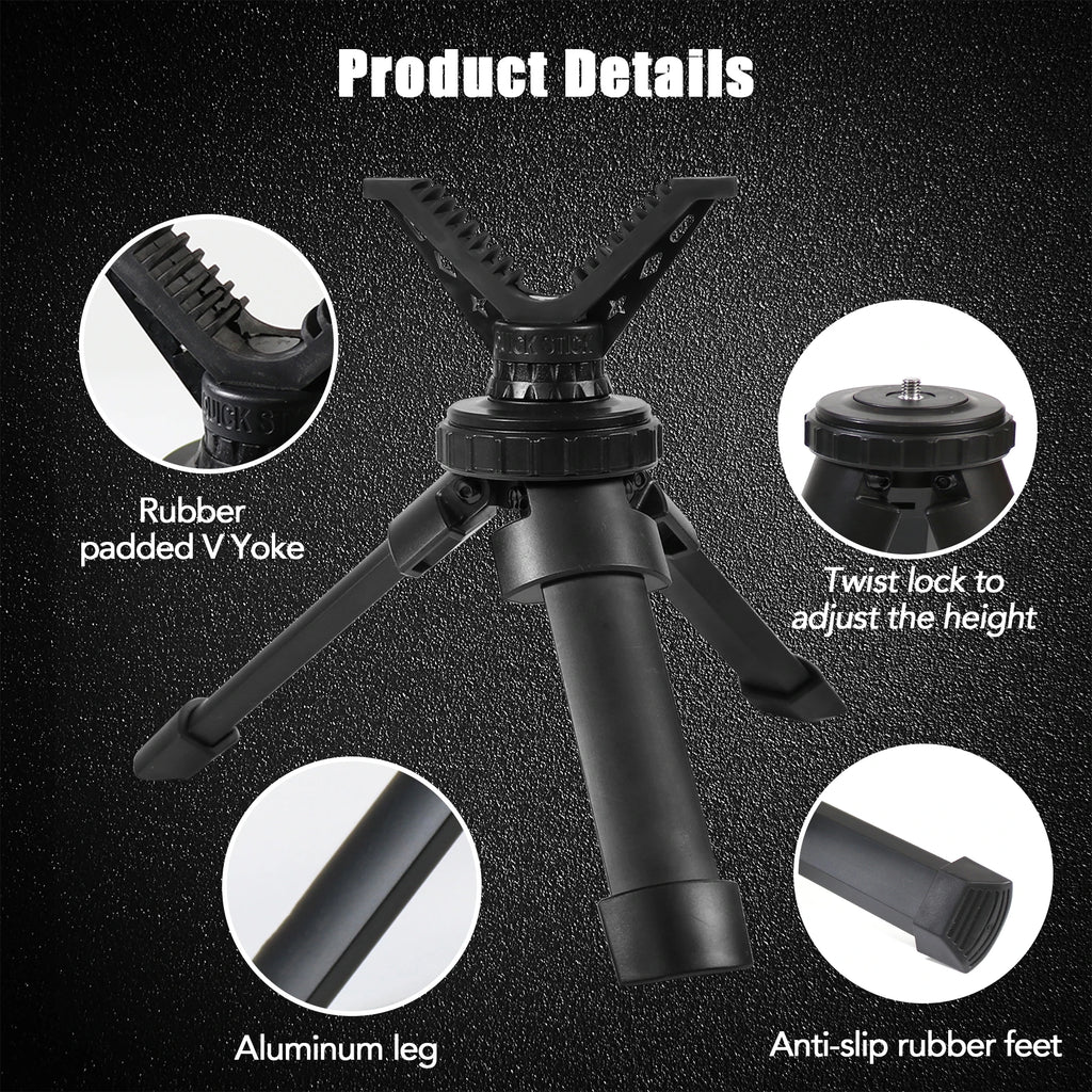 Stay accurate and mobile with this Compact Tactical Shooting Tripod. Made from rugged aluminium, this lightweight rifle rest features a 360° rotating V yoke for smooth target transitions.