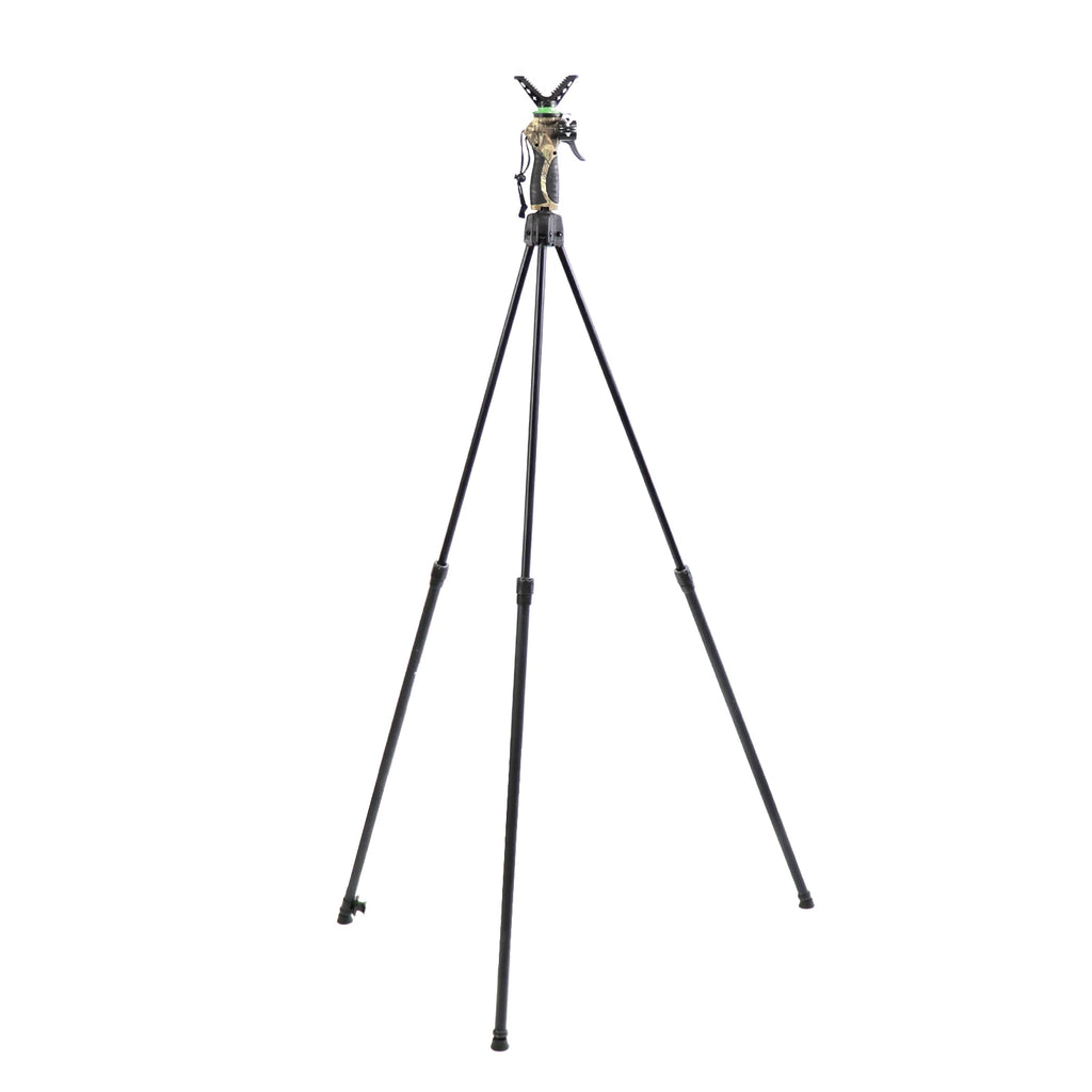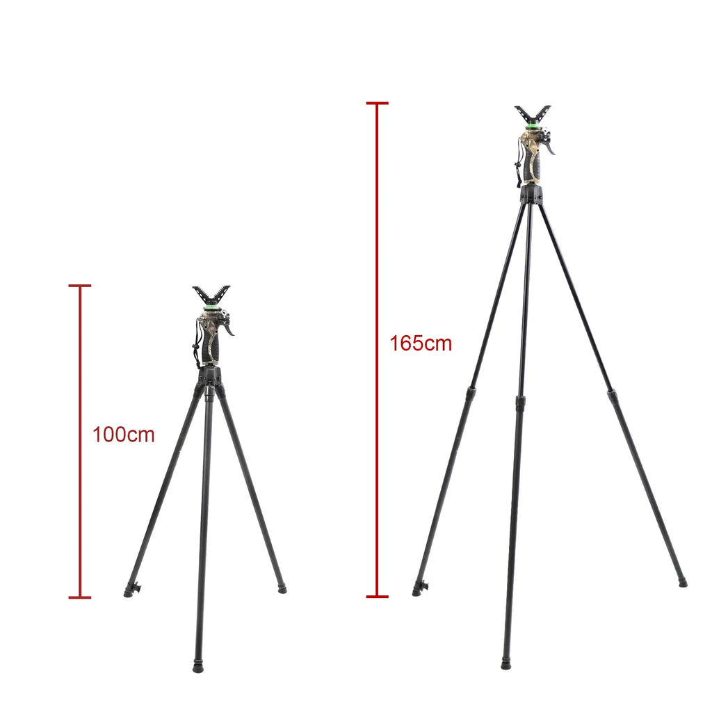 Stay steady in the field with the HUNTPAL Generation 4 Hunting Tripod. Built from lightweight aluminium, this height-adjustable shooting stick features a trigger-lock system for one-handed control, a detachable 360° V yoke, and compatibility with flashlights or optical gear.