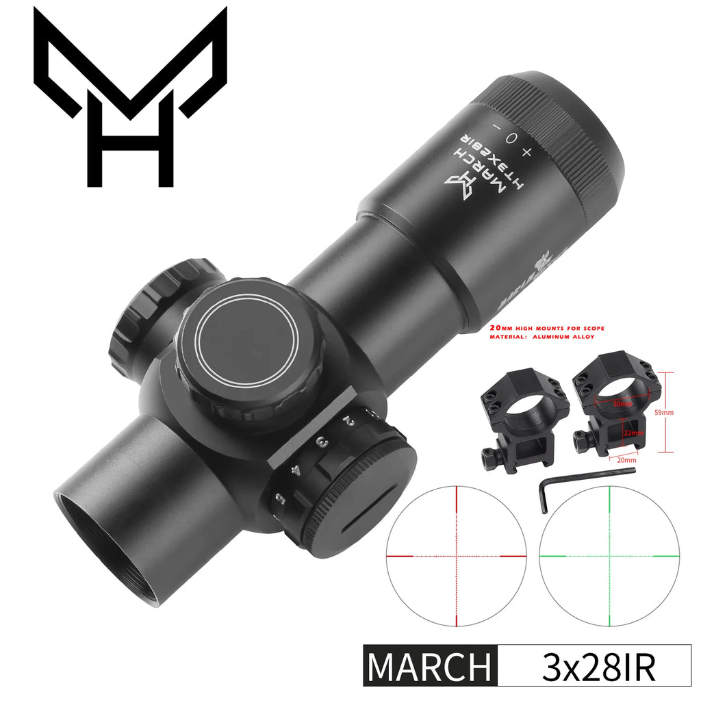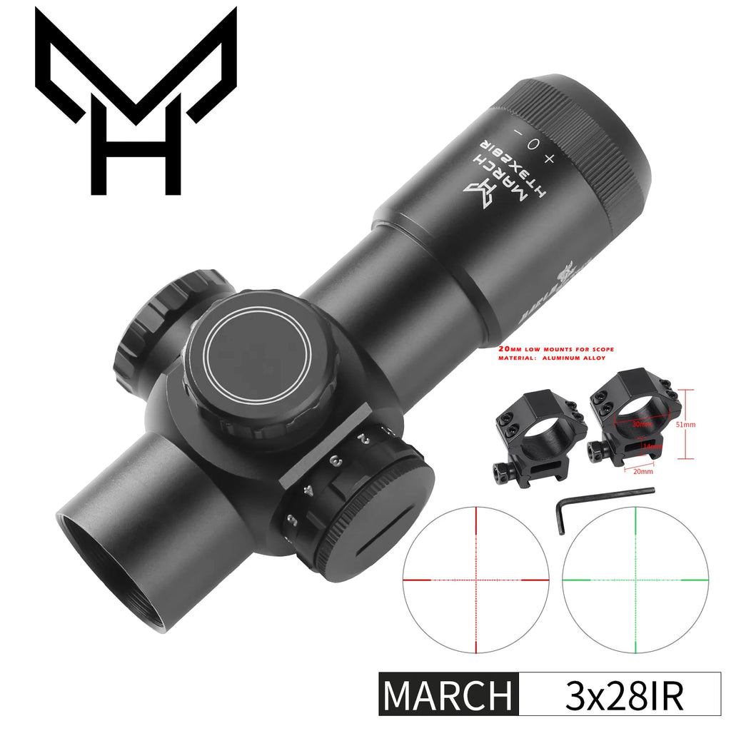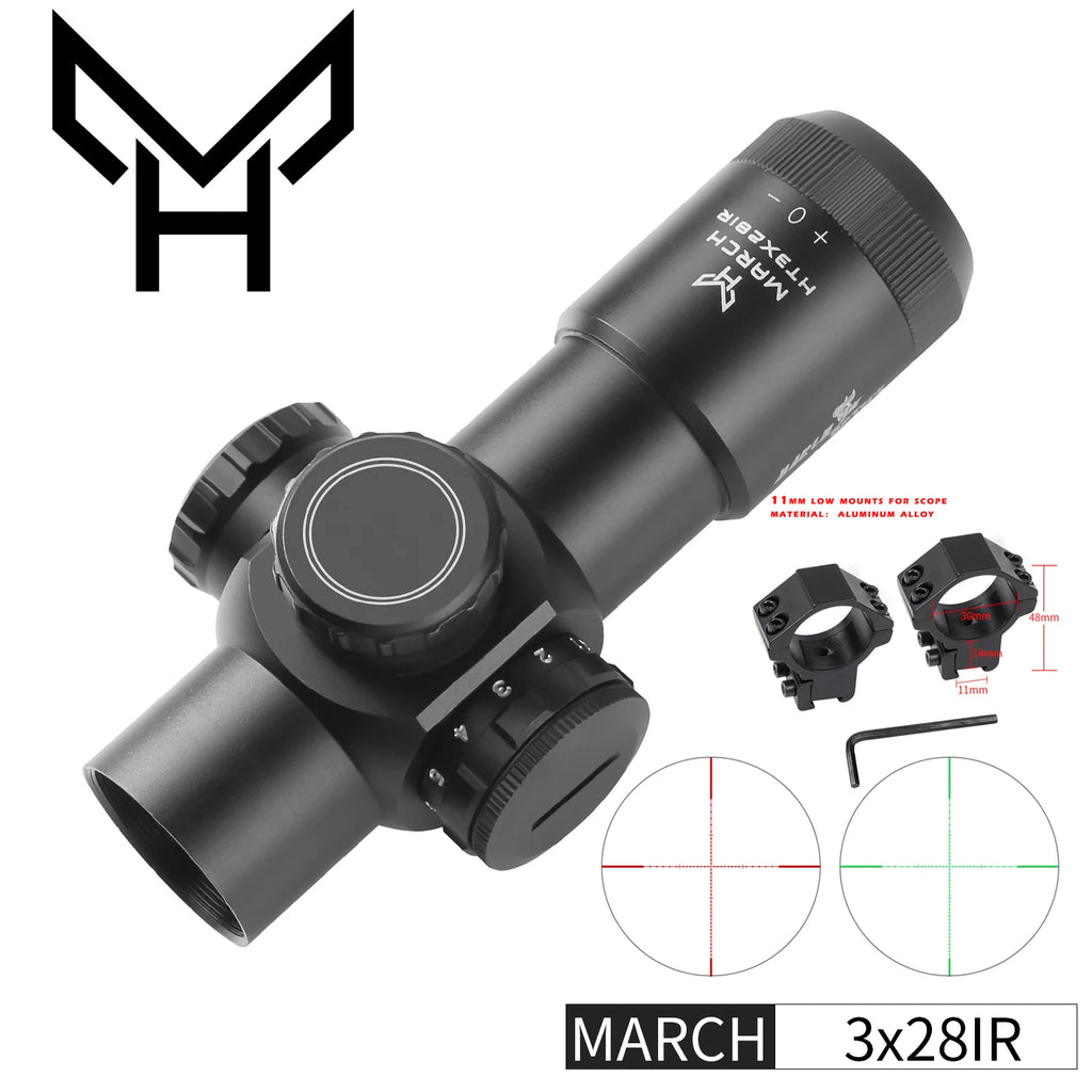 The MARCH H3×28 transforms close-range accuracy with its fixed 3× magnification that delivers the perfect balance between target identification and rapid acquisition. This ultra-compact 128mm scope weighs just 209 grams yet features a 30mm tube diameter for maximum light transmission and robust construction that handles demanding field conditions.