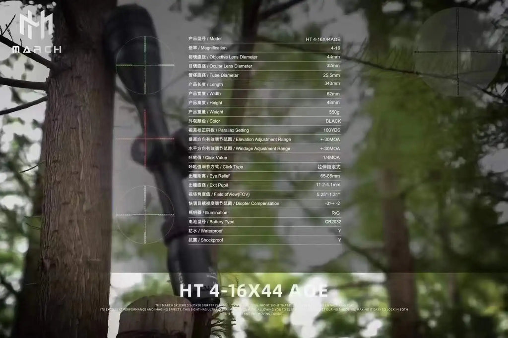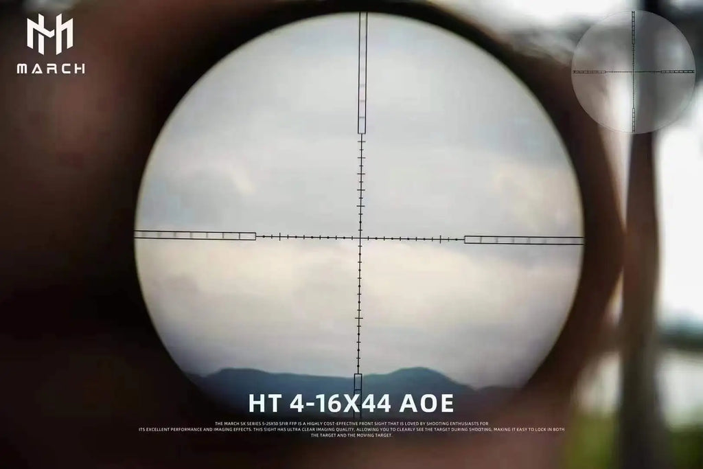 The MARCH HT 4-16×44 transforms reticle visibility with its advanced RGB illumination system that offers red, green, and blue reticle options for optimal contrast in any lighting condition. This versatile tactical scope combines comprehensive 4-16× magnification with a large 44mm objective lens and premium FMC coating to deliver exceptional clarity from close woodland shots to detailed long-range target identification.