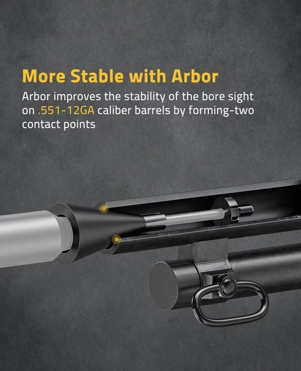 A convenient button switch and long-lasting battery allow for efficient and accurate zeroing. The included arbor improves stability for larger calibres, ensuring reliable performance in the field.