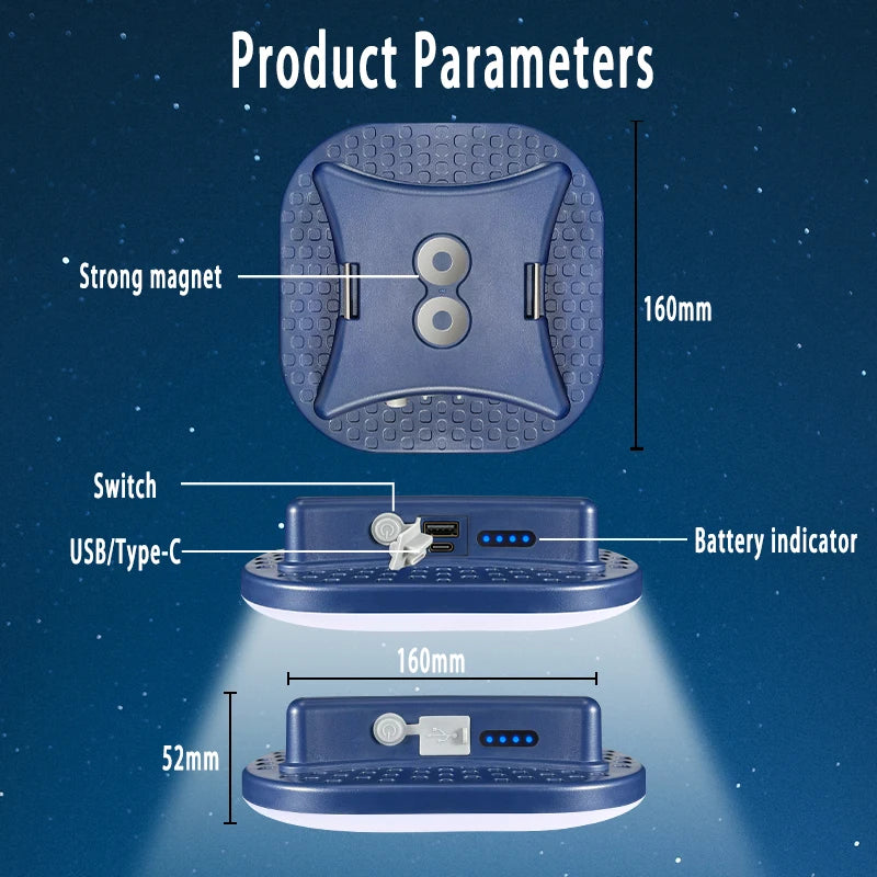 Engineered with dual magnetic bases that instantly attach to metal surfaces and deep waterproof protection for all-weather reliability, this robust lantern delivers 10-60 hours of continuous illumination depending on brightness settings. The Type-C fast charging at 2A gets you back to full power quickly, whilst the anti-slip hanging hook provides alternative mounting when magnetic surfaces aren't available. Clear power indicators keep you informed of remaining battery life, ensuring you're never caught unprepared.