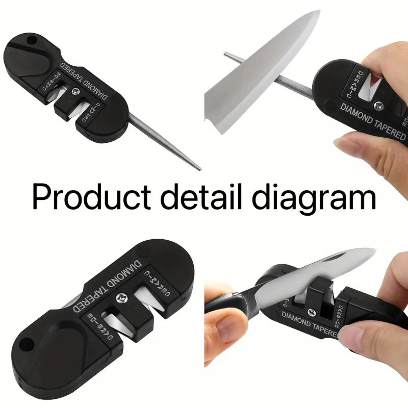Keep your blades razor-sharp with this Portable Knife Sharpening Tool. Designed for outdoor enthusiasts, this multifunctional sharpener features a tungsten steel blade and an electroplating rod for efficient sharpening.