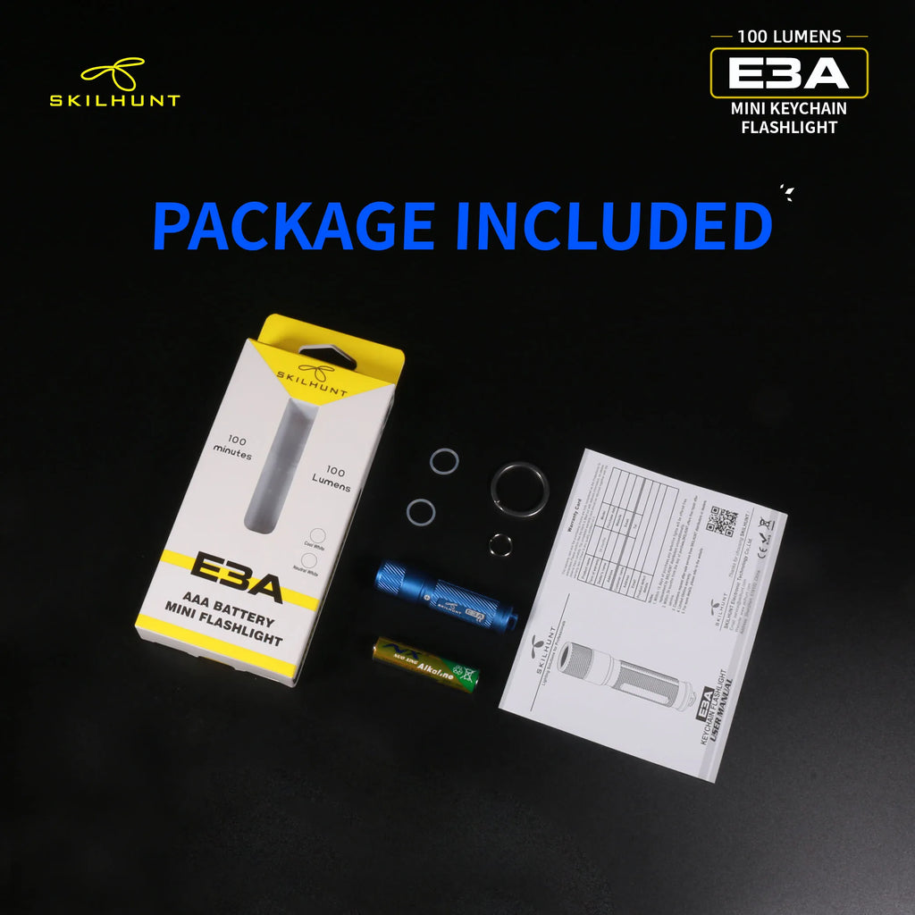 The SKILHUNT E3A is a lightweight, ultra-compact flashlight delivering 100 lumens from a single AAA battery.