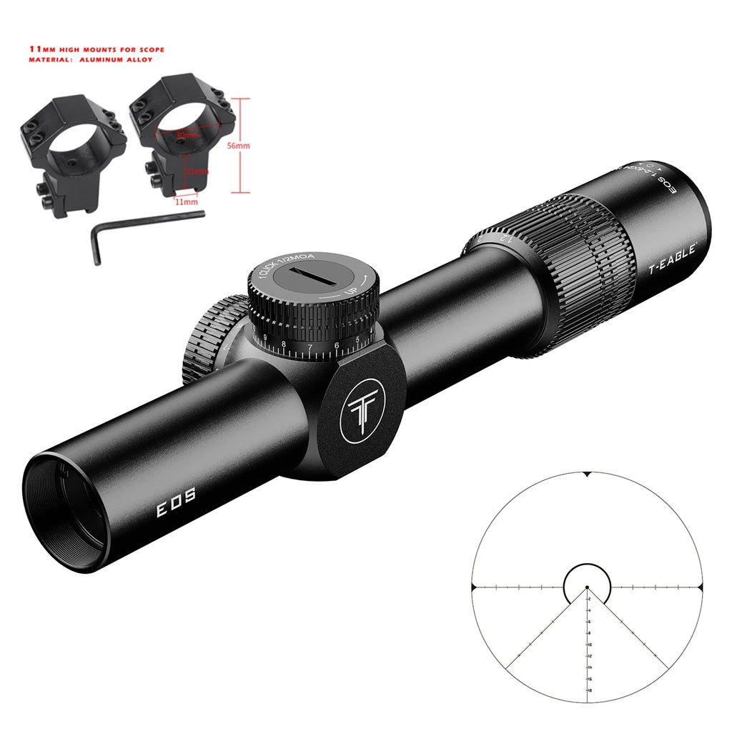 The T-EAGLE EOS 1.2-6×24 revolutionises versatile shooting with its low-power variable design that seamlessly transitions from 1.2× for lightning-fast target acquisition to 6× for precise medium-range shots. This wide-angle LPVO features an enhanced field of view that maintains situational awareness whilst the 30mm tube diameter maximises light transmission for superior clarity in challenging conditions.