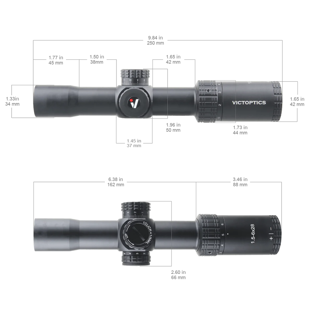 The VICTOPTICS S4 1.5-6×28 delivers exceptional adaptability with its versatile 1.5-6× magnification range that transitions seamlessly from rapid close-quarters engagement to precise medium-range shots. This compact tactical scope features dual-illuminated VMD-2 reticle (red/green) with 5 brightness levels that ensure optimal visibility from dawn patrol to bright daylight conditions whilst maintaining the wide field of view (72.8-18.8 feet at 100 yards) essential for situational awareness.